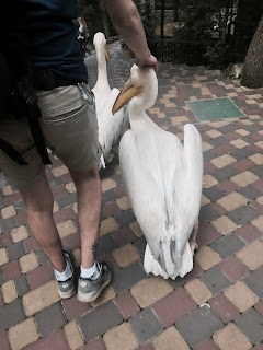 так как цены там конечно завышены. По сути можно взять с собой печенье не сладкое, орехи, яйца перепелиные, морковь в огромном количестве и зелень. Этого будет достаточно. Там же нас встретили пеликаны. Эти ребята выпрашивают еду и все их охотно угощают.